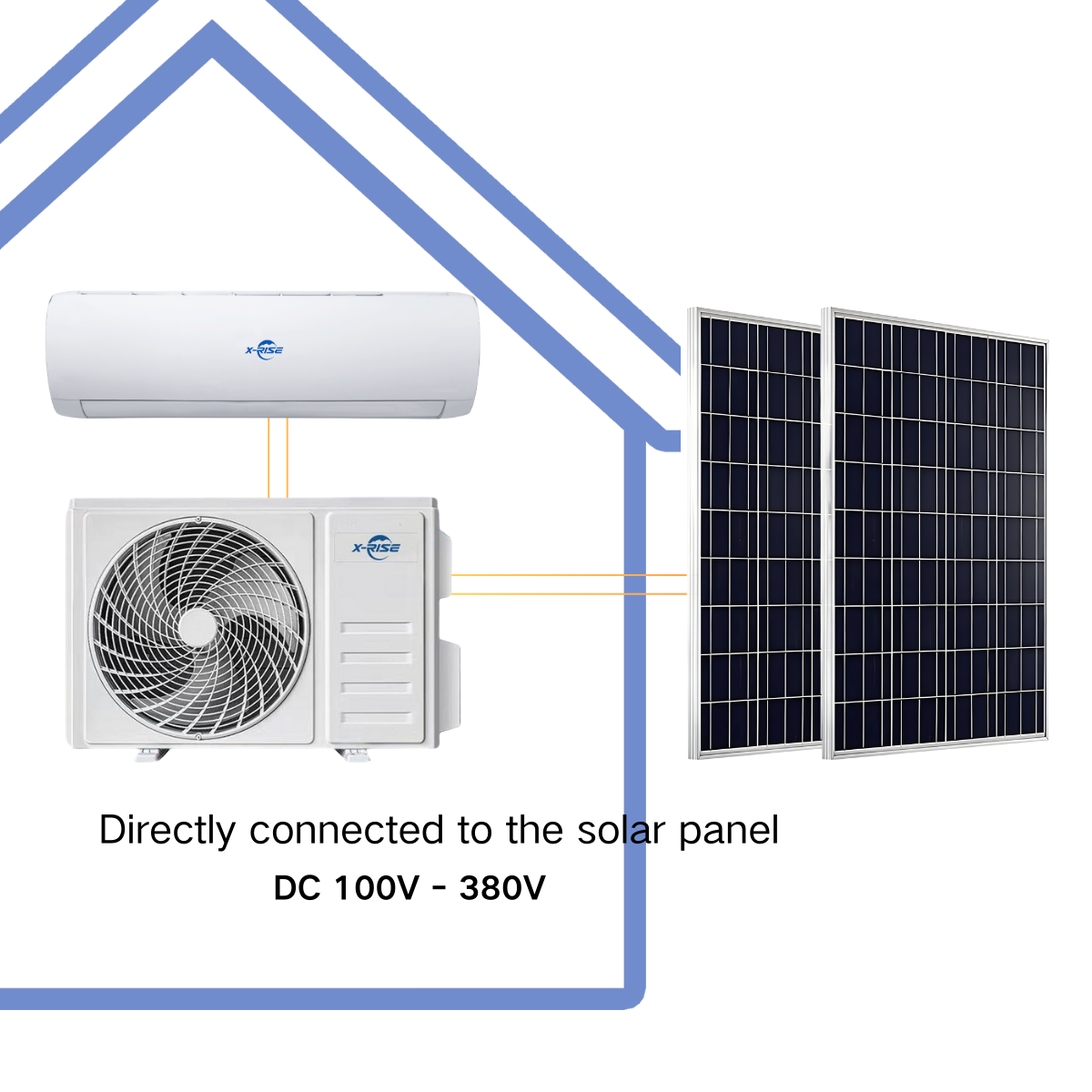 XRIAC24000-V1 Hybrid AC/DC Solar Air Conditioner:Xrise 4th generation hybrid ACDC solar air conditioner works with solar panel unstable DC power directly from 7am to 17pm day time with power minimum 300w, no need solar inverter, no need grid power, no need battery. Rainy day, it will works mix power AC+DC and priority from solar power. At night, it automatically get grid AC power same as DAIKIN high efficiency normal inverter air conditioner. The unit with WiFi function can be controlled anywhere through WiFi or Bluetooth, and App with DC power meter and AC power meter, you can fully check how much energy saving or using energy through APP smart power meter function.
