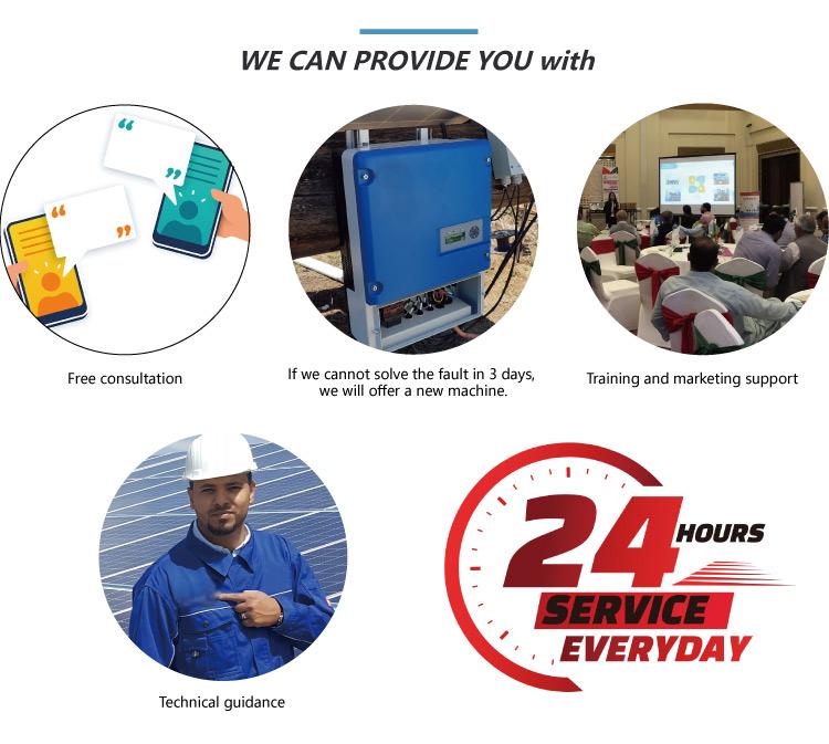 The solar pumping inverter controls and regulates the operation of the solar water lifting system, converts the direct current emitted by the solar array into alternating current, drives the pump, and adjusts the output frequency in real time according to the change of sunshine intensity to achieve maximum power point tracking (MPPT).